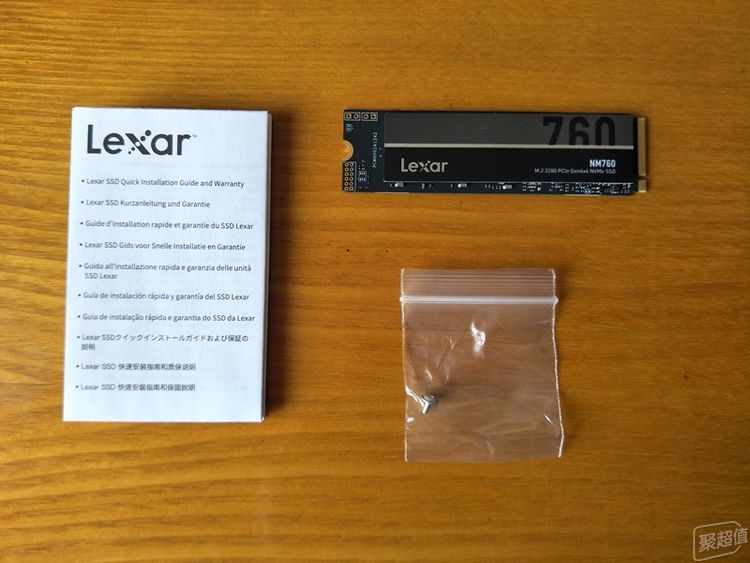 先来看看全家福,这款固态硬盘随机带了,使用说明书和一颗固定螺丝,比较简单。
